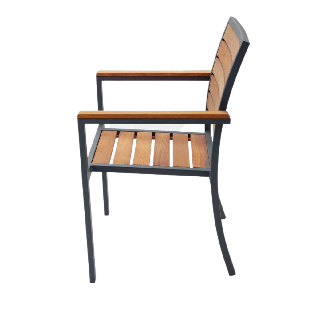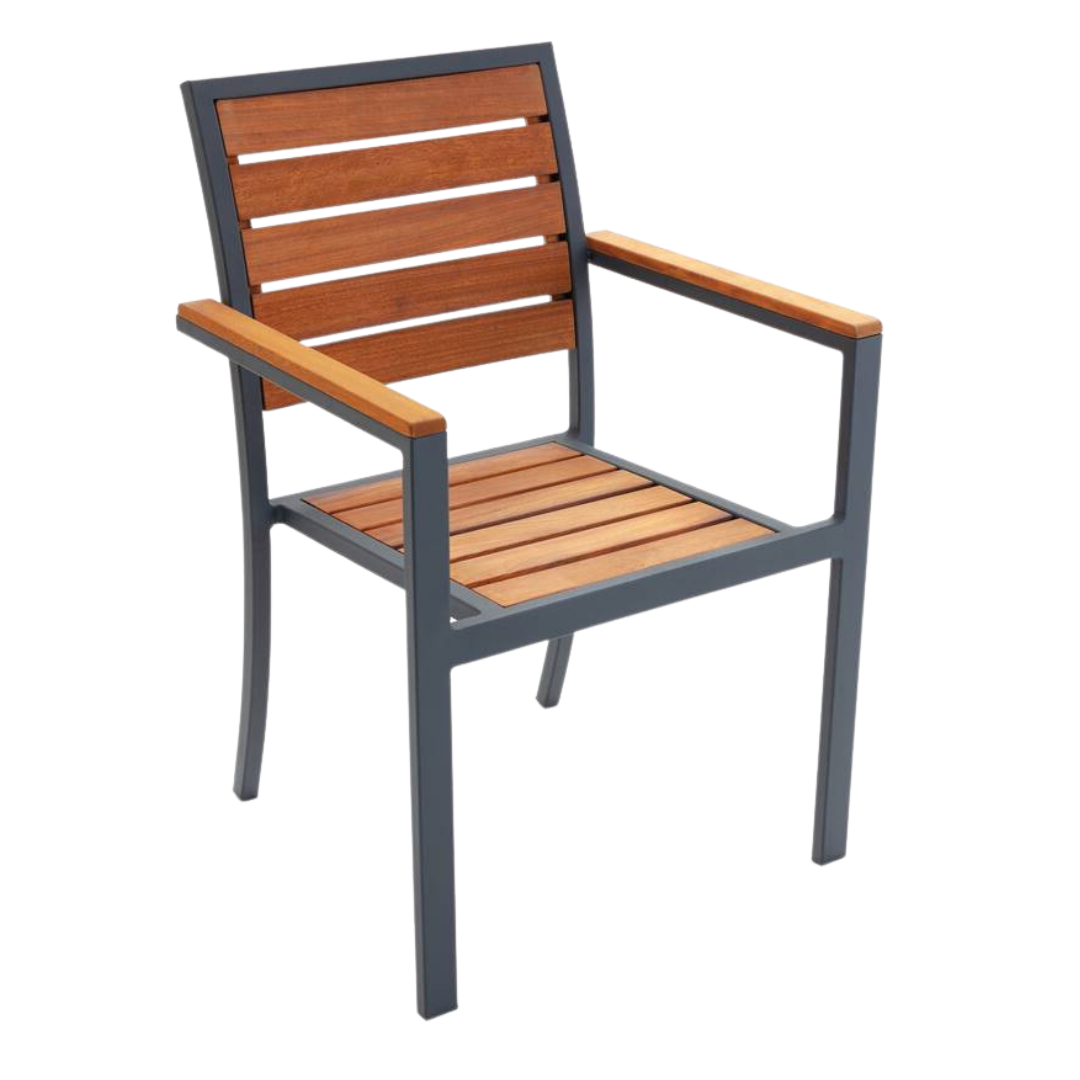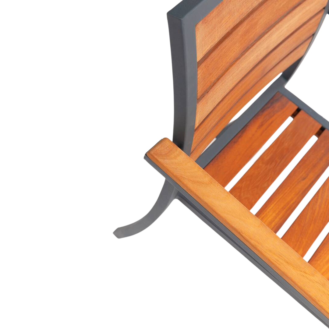 Şık ve modern tasarıma sahip alüminyum dış mekan sandalyemiz, evler, kafeler ve restoranlar için idealdir. Metal iskeleti isteğe bağlı siyah, cappuccino, beyaz veya antrasit renklerde, dayanıklı statik toz boyama ile tamamlanmıştır.